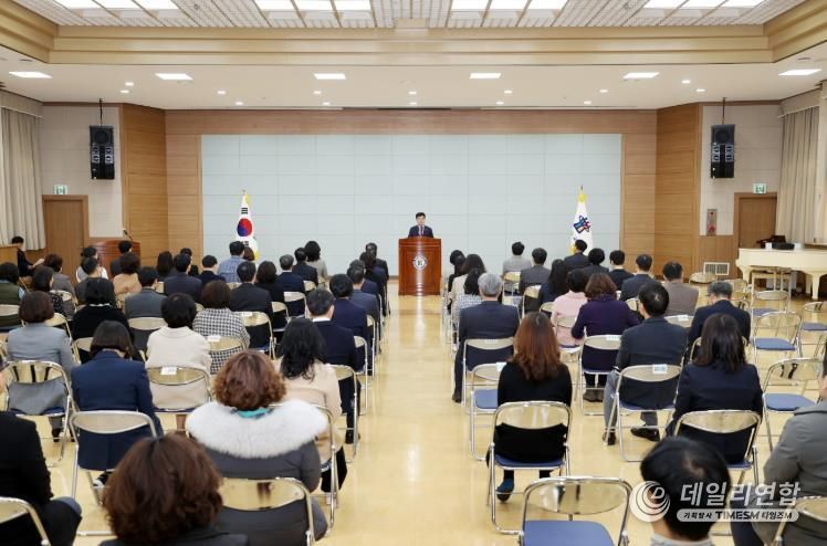 데일리연합 (SNSJTV) 김준 기자 | 윤건영 충청북도교육감이 2일 오전, 화합관에서 12월 월례조회를 개최했다.