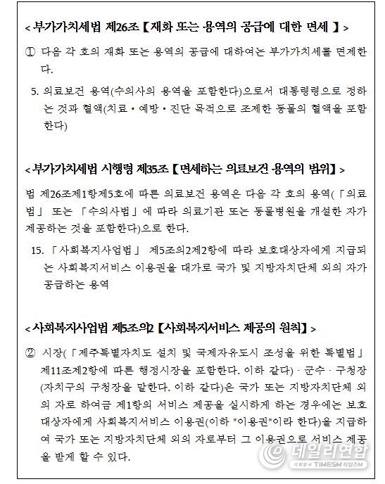 그동안 업계에서는 바우처 방식의 산모‧신생아 돌봄 서비스는 바우처를 대가로 산모에게 공급하는 용역이며, 해당 용역은 부가가치세 면세대상 용역*에 해당되므로 본인부담금 부분도 면세로 보아야 한다고 주장하며, 현장에서 과‧면세 적용 여부로 혼란을 겪음에 따라 본인부담금 부분에 대해 과세로 판단한 기존 유권해석에 대한 재검토를 지속적으로 건의해 왔다.