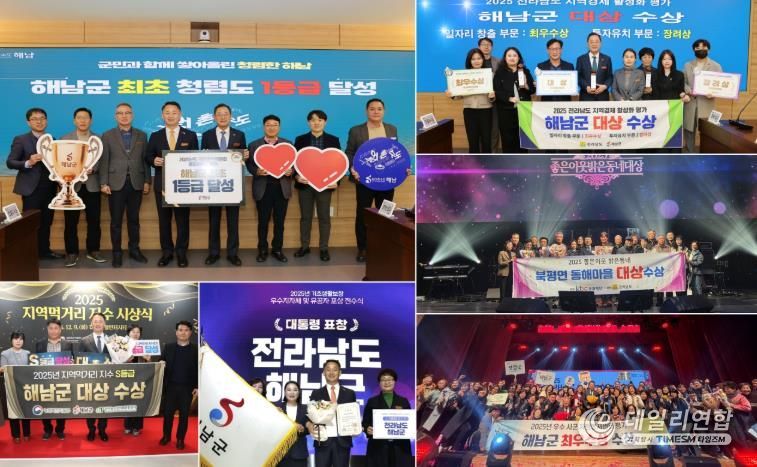 데일리연합 (SNSJTV) 김민제 기자 | 해남군이 2025년 한 해 동안 총 110건의 기관표창을 수상하며 역대 최다 수상 기록을 달성했다.