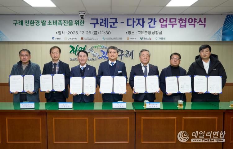 데일리연합 (SNSJTV) 김민제 기자 | 구례군은 친환경 농업의 가치를 확산하고 쌀 소비 기반을 강화하기 위해 공공·금융·농협·민간이 참여하는 다자간 업무협약을 지난 12월 26일 군청 상황실에서 체결했다.