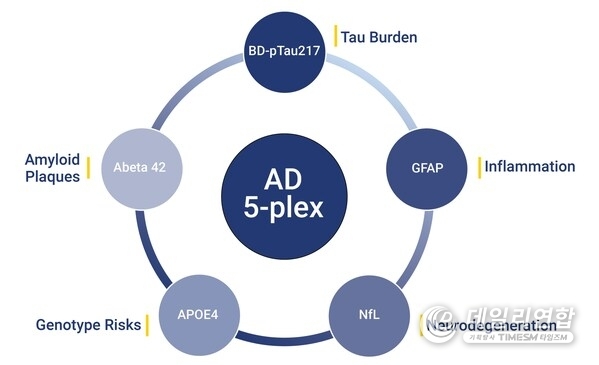 프레몬트, 캘리포니아주, 2026년 1월 13일 /PRNewswire/ -- 질병 조기 발견 기술의 발전에 주력하는 정밀 단백질체학 선도 기업 알라마 바이오사이언스(Alamar Biosciences, 이하 "알라마")가 연구 전용(RUO) NULISAqpcr™ AD 5-플렉스 어세이 출시를 발표했다. 이는 알츠하이머협회(Alzheimer's Association) 권장 가이드라인과 관련된 5대 혈액 기반 바이오마커, 즉 뇌 유래 인산화 타우 217(BD-pTau217), 신경섬유 경쇄(NfL), 아밀로이드 베타 42(Aβ42), 아교섬유산성 단백질(GFAP), APOE4(보유자 상태)를 혈액 또는 혈장 샘플 하나로 정량적으로 동시 측정할 수 있는 혁신적인 솔루션이다.