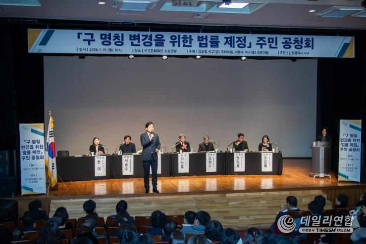 데일리연합 (SNSJTV) 김민제 기자 | 인천 서구는 지난 19일 서구문화회관 소공연장에서 지역주민 약 200여 명이 참석한 가운데 ‘구 명칭 변경을 위한 법률 제정 주민 공청회’를 개최하고 주민 의견을 수렴했다.