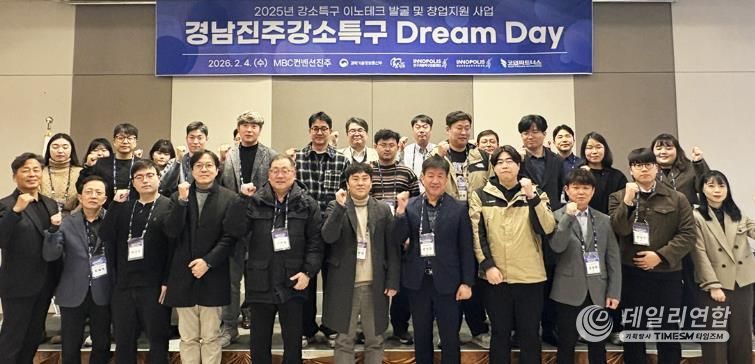 데일리연합 (SNSJTV) 김민제 기자 | 경상국립대학교 경남진주강소특구지원센터는 2월 4일 오후 MBC컨벤션진주에서 우수 창업기업의 성과를 공유하고 지역 창업 생태계의 지속가능한 성장과 협력 네트워크 강화를 위해 ‘경남진주강소특구 드림데이(Dream Day)’를 개최했다.