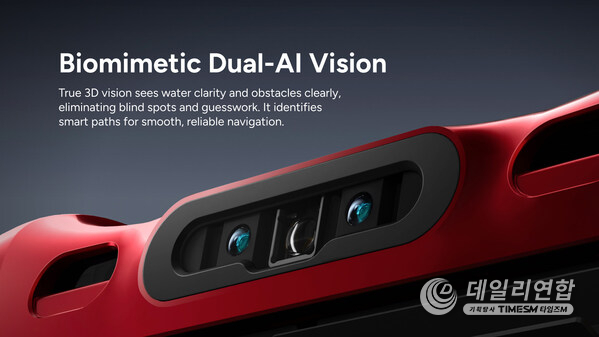 이 수영장 청소기의 핵심 경쟁력은 생체 모방 듀얼 비전(Biomimetic Dual-Vision) 시스템에 있다. 기존 센서와 달리 이 시스템은 시차(parallax) 원리를 활용해 실제 3D 깊이 데이터를 생성하며, 계단, 경사면은 물론 40츠 깊이의 얕은 태닝 레지까지 정밀하게 식별한다. 이러한 시각 정보는 비전 인텔리전스(Vision Intelligence) 시스템으로 전달되어 업계 최초의 AI 타깃 시스템(AI Target System)을 구동한다. 동일 구역에서 여러 차례 주행 후에도 이물질이 감지될 경우, 시스템은 자동으로 터보 모드 활성화해 즉시 3배 흡입력(300%)으로 가장 까다로운 오염 구간에서 강력한 청소 성능을 발휘한다.
