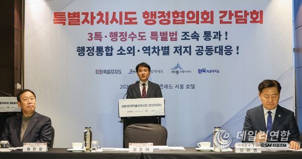 데일리연합 (SNSJTV) 장우혁 기자 | 대한민국특별자치시도 행정협의회(대표회장 강원특별자치도지사 김진태) 시‧도지사는 2026년 2월 8일 서울 콘래드 호텔에서 긴급 회동, 간담회를 개최했다.