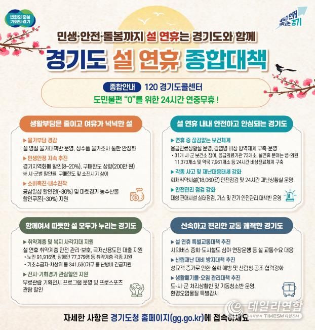 데일리연합 (SNSJTV) 김민제 기자 | 경기도가 도민들이 따뜻하고 편안한 명절을 보낼 수 있도록 ‘설 연휴 종합대책’을 추진한다.