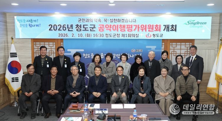 데일리연합 (SNSJTV) 김민제 기자 | 청도군은 지난 10일 군청 제1회의실에서 ‘2026년 청도군 공약이행평가위원회’를 개최하고 민선 8기 공약사항에 대한 추진 상황을 점검했다.