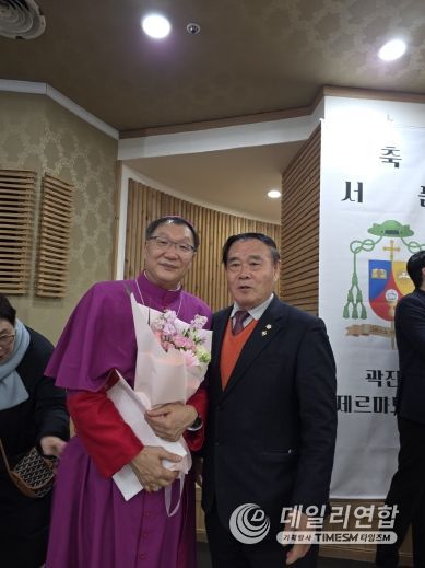 데일리연합 (SNSJTV) 장우혁 기자 | 수원특례시의회 이재식 의장은 2월 11일(수) 오후 2시, 장안구 정자동 주교좌성당에서 열린 천주교 수원교구 곽진상 제르마노 주교 서품식에 참석해 신임 보좌주교의 서품을 축하했다.