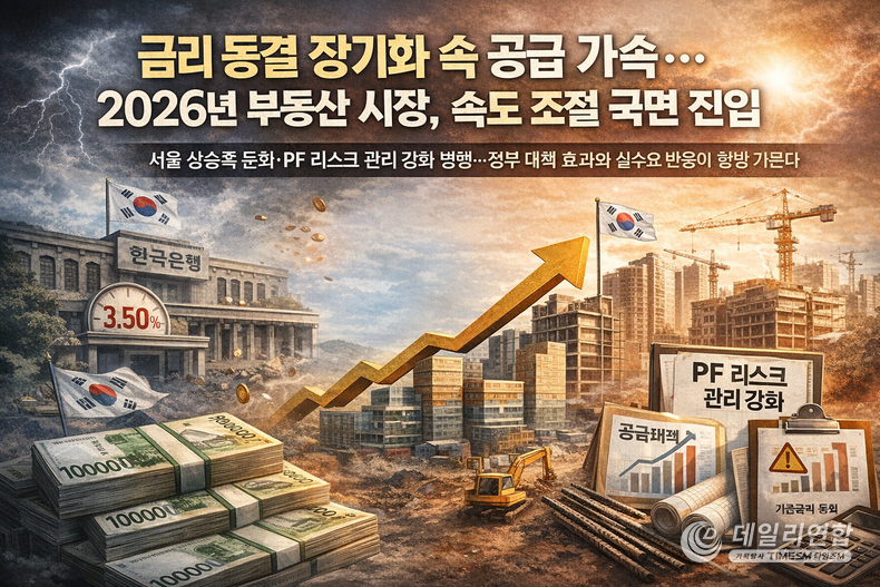 데일리연합 (SNSJTV) 이기삼 기자 | 국내 부동산 시장은 2026년 들어 ‘금리 동결 장기화 가능성’과 ‘공급 가속·금융규제 미세조정’이 교차하며 방향성을 탐색하는 국면에 들어섰다. 거래는 회복 신호가 나타나지만, 가격은 지역·권역별로 온도 차가 커지면서 “상승 추세 속 둔화”와 “실수요·투자 수요 재분화”가 동시에 관측된다.
