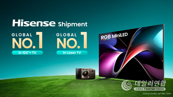 칭다오, 중국 2026년 3월 3일 /PRNewswire/ -- 글로벌 소비자 가전 및 가전 분야의 선도 브랜드 하이센스(Hisense)가 글로벌 대형 스크린 TV 시장에서의 리더십을 재확인했다. 옴디아(Omdia)의 2025년 연간 글로벌 출하량 데이터에 따르면, 하이센스는 100인치 이상 TV 부문에서 2023년부터 2025년까지 3년 연속 세계 1위를 기록했으며, 2025년 글로벌 출하량 점유율은 57.1%에 달했다.