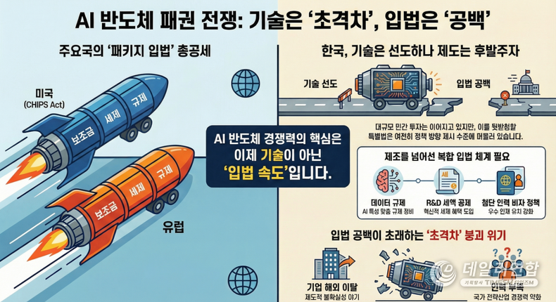 글로벌 AI 반도체 패권 경쟁은 이미 기술 단계를 넘어 제도 경쟁으로 진입했다. 한국이 ‘초격차’를 유지하기 위해서는 기술 투자뿐 아니라, 법과 정책의 속도 역시 경쟁력의 핵심 요소로 재설정해야 할 시점이다.