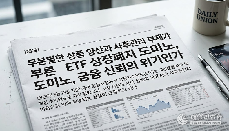 데일리연합 (SNSJTV) 송동섭 기자 | 국내 금융시장에서 상장지수펀드(ETF)는 자산운용사의 핵심 수익원으로 자리 잡았으나, 시장 트렌드 분석 실패와 운용사의 사후관리 미흡으로 인해 퇴출되는 상품이 급증하고 있다. 한국거래소와 금융투자업계에 따르면 2026년 1분기에만 이미 8개 종목이 상장폐지 절차를 밟았으며, 이는 2024년 51개, 2025년 50개에 이어 여전히 높은 수준을 유지하고 있는 것으로 확인됐다.