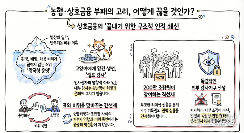 결언적으로, 미온적인 제도 개선은 기득권 구조를 더욱 공고히 할 뿐이다. 현재 논의 중인 농협 개혁안은 단순한 조직 개편을 넘어 부패가 원천적으로 불가능한 토양을 만드는 작업이어야 한다.