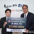 데일리연합 (SNSJTV) 김준 기자 | 전남교육 꿈실현재단은 지난 1일 세계호남향우회 총연합회가 ‘전남 의(義) 실천 꿈 실현금’ 2,200만원을 기탁했다고 밝혔다. 세계호남향우회 총연합회의 기탁은 2024년 체결한 업무협약에 따라 전남글로컬 미래인재 육성을 위한 협력사업의 일환으로 향후에도 지속적인 교육협력과 기부가 이어질 예정이다. 기탁금은 세계호남향우회 총연합회의 기탁 취지에 따라 전남 학생이 ▲ 전남 의(義) 정신 ▲ 5·18 민주정신 ▲ K-민주주의 가치를 실천하며, 지역의 역사성과 정체성을 바탕으로 세계시민으로 성장할 수 있도록 지원하는 ‘전남 의(義) 실천 꿈 실현금’으로 활용될 예정이다. 전남교육 꿈실현재단은 이번 기탁금을 시작으로 세계호남향우회와의 협력 기반을 더욱 강화하여, 지속 가능한 교육기부 모델을 마련하고 전남 학생의 ‘글로컬 민주시민’ 성장을 적극 지원할 계획이다. 정광일 세계호남향우회 총연합회 사무총장은 “이번 기부가 지역인재 양성 기반 조성에 도움이 될 수 있기를 바란다”며 “우리 학생들이 전남의 민주, 평화, 인권 정신을 계승하여 민주시민의 자질을 갖춘 글로컬 미래