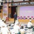 데일리연합 (SNSJTV) 박영우 기자 | 부산광역시 남구는 지난 9월 6일 남구청 1층 대강당에서 ‘제2기 유엔남구 육아아빠단’육아골든벨 행사를 개최했다. 육아아빠단 아빠들의‘함께육아’를 지원하기 위해 마련된 이날 행사에는 남구청‘개청오십’사행시 이벤트, 육아 상식·정책 및 아이 맞춤 문제로 이뤄진 골든벨 퀴즈, 함께육아 인식 개선 캠페인 등이 진행됐다. 결선을 통해 최후의 1인으로 선정된 육아의 신에게는 커피머신을 증정했고 그 외에도 골든벨 우수자 9명에게 다양한 상품을 증정했다. 골든벨에 참가한 한 아빠는“유엔남구 육아아빠단 프로그램에 적극 참여하면서 아이와 함께 보내는 시간이 많아져 매우 즐겁고 행복하다.”라며 “이런 특별한 경험을 만들어줘서 남구청과 용호사회복지관 관계자분들에게 감사드린다.”라고 소감을 밝혔다. 오은택 남구청장은“앞으로도 아이 키우기 좋은 일등 도시 남구가 되도록 다양한 사업과 프로그램을 추진해 나가겠다.”라고 전했다.