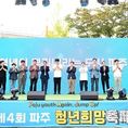 데일리연합 (SNSJTV) 박해리 기자 | 파주시는 지난 27일 금릉역 앞 중앙광장에서 열린 ‘제4회 파주 청년희망축제’가 시민들의 뜨거운 호응 속에 성공적으로 마무리됐다고 밝혔다. 올해 축제는 ‘파주청년, 다시 도약하다!(Paju Youth Again, Jump Up!)’을 주제로, 도약하는 청년세대의 열정과 활력을 시민과 함께 나누는 장으로 마련됐다. 이번 축제의 백미는 개막식과 함께 진행된 ‘파주 청년 비전선포식’이었다. 청년정책협의체 공동위원장은 무대에서 ‘청년이 뿌리내리는 도시, 파주’라는 비전을 선포하며, 청년과 지역사회가 함께 나아갈 미래의 방향을 제시했다. 특히 청년들이 직접 낭독한 선언문과 청년친화도시 지정을 위한 기념행사는 파주시의 확고한 의지를 대외적으로 알리는 계기가 됐다. 오후 2시부터 8시까지 진행된 이번 축제는 ▲사전공연 ▲청년 골든벨 ▲청년 가요제 ▲청년공간 특별강좌 ▲프리미엄 수제 맥주 시음 ▲청년창업가 플리마켓 ▲무료 체험공간 ▲대형 ‘파랑’ 포토존 등 다채로운 프로그램으로 꾸려졌다. 가요제 무대에서는 청년들의 끼와 열정이 빛났으며, 청년창업가 판매공간 및 수제 맥