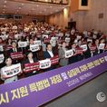 데일리연합 (SNSJTV) 박해리 기자 | 용인특례시는 22일 오후 수지구 평생학습관 큰어울마당에서 ‘특례시 지원에 관한 특별법 제정 촉구 시민결의대회’를 열고 정부에 시민의 뜻을 담은 특별법 제정의 필요성을 강력히 촉구했다. ‘2025년 시민과의 대화’에 앞서 열린 결의대회에서 이상일 시장은 300여명의 시민과 함께 ‘특례시 지원 특별법 제정 촉구’, ‘과감한 재정·사무이양 실질적 특례 권한 보장’ 등의 내용이 담긴 피켓을 들고 특례시 지원 특별법 제정을 위한 구호를 외쳤다. 이 자리에서 용인특례시를 대표하는 시민 2인이 결의문을 낭독했고, 현장에서는 시민 서명운동도 진행됐다. 이날 결의대회에 참여한 이상일 시장과 용인특례시민들은 ▲특례시 지원 특별법 조속 제정 ▲특례시에 걸맞은 행정·재정 권한의 실질적 이양 ▲시민 스스로 특별법 제정 실현에 뜻을 모았다. 이상일 시장은 “인구 110만명을 돌파한 용인특례시는 광역시급 행정과 폭증하는 도시 인프라 확충 수요를 감당하고 있지만 현행 제도에서는 기초자치단체 수준의 권한과 재정지원을 받고 있어 여러 분야에서 제약을 받고 있다”며 “특례시가 특례시 발전에 합당한 행