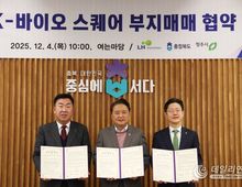 데일리연합 (SNSJTV) 임재현 기자 | 충청북도, 청주시, 한국토지주택공사는 12월 4일 오송 제3생명과학 국가산업단지 내 조성되는 K-바이오 스퀘어 부지 633,524㎡(약 19.1만평)에 대한 매매 협약을 체결했다고 밝혔다. 이번 협약은 지난 8월 28일 국토교통부의 오송 제3국가산단 계획 승인에 따른 후속 사항으로, 충북도와 청주시는 사업시행자인 LH에 2025년부터 2032년까지 8년간 총 7,178억 원의 사업비를 분담해 납부한다. 이중 계약금 112억 원(충북도 96억, 청주시 16억)은 금년 12월 중 납부할 예정이다. 김영환 지사는 “충청북도는 K-바이오 스퀘어 추진을 위한 모든 준비를 마쳤으며, 이제는 정부가 답할 차례”라며 “대한민국 미래 100년을 책임질 국가 핵심 사업인 만큼 정부의 과감한 투자가 필요하다”고 밝혔다. 이범석 시장은 “청주시가 100만 자족도시로 도약하기 위해서는 첨단산업 육성이 핵심”이라며 “K-바이오 스퀘어는 그 중심 프로젝트인 만큼 재정·행정적 지원을 아끼지 않겠다”고 밝혔다. 이상욱 LH 사장직무대행은 “금년 8월 산업단지계획 승인고시되면서 오송