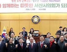 데일리연합 (SNSJTV) 장우혁 기자 | 서산시의회는 2일 서산시의회 본회의장에서 ‘2026년 서산시의회 시무식’을 갖고 올해 본격적인 업무에 들어갔다. 이날 시무식은 조동식 의장을 비롯한 의원들과 의회사무국 직원 등 30여 명이 참석한 가운데, 2026년 의정활동의 방향을 제시하고 업무 시작에 앞서 새롭게 각오를 가졌다. 조동식 의장의 신년사를 시작으로 사진 촬영, 의원과 직원 간 새해 인사순으로 진행됐다. 조동식 의장은 시무식 신년사에서 “제9대 시의회의 임기를 마무리하는 시기인 만큼 끝까지 초심을 잃지 않고, 시민의 작은 목소리에도 귀 기울여 세심한 의정활동을 펼치자”고 말했다. 제9대 서산시의회는 ‘시민과 함께하는 따뜻한 서산시의회’ 슬로건과 함께 오는 1월 5일 제311회 임시회를 시작으로 지역 현안 해결을 위한 본격적인 의정활동에 돌입할 예정이다.