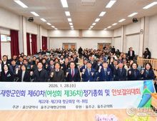 데일리연합 (SNSJTV) 김민제 기자 | 울주군 재향군인회가 28일 울주군 보훈회관 대회의실에서 재향군인회 회원 등 120여명이 참석한 가운데 ‘제60차 정기총회·안보결의대회 및 회장 이·취임식’을 개최했다. 이날 총회에서는 전년도 사업 성과와 결산을 돌아보고, 2026년도 사업계획 및 예산안을 심의·의결하는 등 단체 운영 전반에 관한 주요 안건을 논의했다. 이어 기념식에서는 국민의례와 향군인의 다짐 낭독을 시작으로, 향군 발전과 지역 안보 활동에 기여한 모범회원에게 표창을 수여했다. 또 안보결의문 채택 및 낭독을 통해 자유민주주의 수호와 지역 안보 확립을 위한 결의를 다졌다. 이와 함께 지난 8년간 울주군 재향군인회를 이끌어 온 임차만 제22대 회장의 이임에 이어, 박종달 제23대 회장이 공식 취임하는 회장 이·취임식을 가졌다. 박종달 신임 회장은 “회원 간 소통과 화합을 바탕으로 재향군인회의 위상을 높이고, 지역사회와 함께하는 안보 단체의 역할을 충실히 수행하겠다”고 밝혔다. 이순걸 군수는 “울주군 재향군인회는 오랜 기간 지역 안보의 든든한 버팀목 역할을 해왔다”며