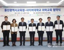 데일리연합 (SNSJTV) 김준 기자 | 울산광역시교육청은 4일 10시 집현실에서 사이버대학 6곳과 교직원 위탁교육 활성화를 위한 업무협약을 맺었다. 이번 협약은 울산교육청 소속 교직원의 자기 계발을 체계적으로 지원해 미래형 평생학습 환경을 조성하고, 교육 전문성을 높이고자 마련됐다. 협약식에는 천창수 교육감을 비롯해 경희사이버대학교, 고려사이버대학교, 사이버한국외국어대학교, 서울사이버대학교, 원광디지털대학교, 한양사이버대학교 등 6곳의 대학 관계자가 참석했다. 협약에 따라 울산광역시교육청 소속 교직원이 산업체 위탁 전형으로 해당 대학에 입학할 경우, 학부 과정은 수업료 50%, 대학원 과정은 20~50% 감면 혜택을 받는다. 지원 대상은 공무원과 교육공무직원, 사립학교 교직원까지 모두 포함된다. 천창수 교육감은 “사이버대학교와 협력해 울산 교육공동체가 유연하게 배우고 성장할 수 있는 기반을 마련했다”라며 “앞으로도 교직원의 평생학습을 꾸준히 지원해 교육의 질을 높이는 데 힘쓰겠다”라고 말했다.