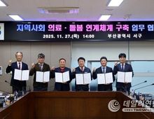 데일리연합 (SNSJTV) 김민제 기자 | 부산 서구는'돌봄통합지원법' 시행에 맞춰, 의료·요양·돌봄 통합지원 기반을 조성하고자 지난 27일 △국민건강보험공단 부산서부지사, △고신대학교 복음병원, △동아대학교병원, △부산대학교병원, △삼육부산병원과 업무협약(MOU)을 체결했다. 이번 협약을 통해 6개 기관은 주민이 필요할 때 언제든 연속적이고 체계적인 돌봄 서비스를 제공할 수 있도록 협력하며, 통합돌봄 서비스 확대에 공동으로 나서기로 했다. 공한수 구청장은 “지역의 주요 병원들이 한마음으로 협력하게 되어 매우 뜻깊다”며, “이번 협약이 돌봄 사각지대 없는 서구, 주민이 안심하고 생활하며 존엄한 삶을 누릴 수 있는 서구, 통합돌봄을 선도하는 서구로 나아가는 중요한 출발점이 되기를 기대한다”고 밝혔다. 서구는 이번 협약을 계기로 주민 중심 생활형 복지체계 구축과 통합돌봄 서비스 확대에 속도를 높여 나갈 계획이다.