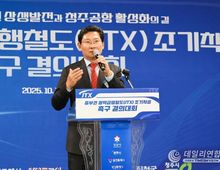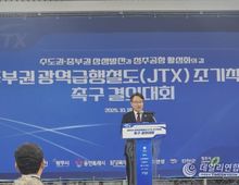 데일리연합 (SNSJTV) 김민제 기자 | 성남시는 14일 오후 2시 30분 청주국제공항에서 열린 ‘중부권 광역급행철도 조기 착공 촉구 결의대회’에 참석해 사업의 조속한 추진을 촉구했다. 이번 결의대회에는 중부권 광역급행철도(JTX) 노선이 통과하는 성남을 비롯해 광주, 용인, 화성, 안성, 진천, 청주 등 7개 지자체가 함께 참여했다. 참석 지자체들은 민간투자사업의 조기 추진과 민자적격성조사의 신속한 통과를 요청하는 공동건의문을 발표했다. 공동건의문에서 7개 지자체는 “수도권과 중부권을 연결하는 중부권 광역급행철도는 지역 간 교통 불균형을 해소하고, 수도권 과밀 문제를 완화하는 핵심 광역교통 인프라”라며 “특히 경강선 연장과 수도권내륙선을 연계한 본 노선은 증가하는 지역 교통 수요에 대응하고, 수도권 동남부와 중부권을 연결함으로써 국가철도망의 균형 발전과 지역경제 활성화에 중요한 역할을 할 것”이라고 밝혔다. 이어 “470만 주민의 간절한 염원을 담아, 중부권 광역급행철도(JTX) 사업의 민자적격성조사가 조속히 통과되고, 관련 행정절차가 신속히 이행되어 조기 착공이 이루어질 수 있도록 관계 기관의 적극적인