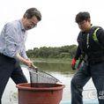 데일리연합 (SNSJTV) 장우혁 기자 | 김동연 지사가 이번에는 달달투어 도중 ‘한탄강 청년어부’를 만났다. 바다에서 하는 어업 외에 내수면어업(육지의 하천, 호수 같은 담수에서 이뤄지는 어업)을 지원하겠다는 메시지였다. ‘한탄강 청년어부’는 구독자 17만 명을 자랑하는 유튜브 채널 이름이자 운영자인 1988년생 김은범씨의 닉네임이기도 하다. 오늘 김 지사는 임진강(임진강은 한탄강과 같은 줄기) 수위 점검을 한 뒤 조업을 마치고 돌아온 한탄강 청년어부의 고깃배 ‘왕건1호’에 성큼 올라섰다. 청년어부가 활어통 뚜껑을 열어 갓 잡아온 물고기를 뜰채로 들어올려 김 지사에게 보여줬다. 만선까지는 아니어도 활어통에는 물고기가 가득 담겨 있었다. 메기,쏘가리, 장어, 빠가사리 등도 보였다. 청년어부 김은범씨가 또 한 개의 활어통을 열자 참게가 그득했다. 김 지사는 청년어부와 함께 어획한 참게를 자동차로 옮겨 실었다. 청년어부 김은범 씨는 한탄강(또는 임진강)에서 직접 잡은 물고기로 밀키트를 제작해 온라인 판매하고 있다. 전국에서 민물고기로 밀키트를 만든 것은 그가 처음이라고 한다