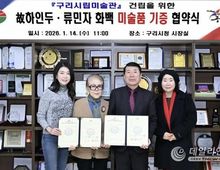 데일리연합 (SNSJTV) 김민제 기자 | 구리시는 지난 14일 시청 3층 시장실에서 ‘구리시립미술관 건립을 위한 작품 기증 협약식’을 개최했다. 이번 협약식은 한국 현대미술사의 거장 고(故) 하인두 화백의 작품 80점과 류민자 화백의 작품 25점을 기증받고, 문화예술 교류 협력을 공식화하기 위해 마련됐다. 특히 이번 기증은 하인두 화백이 『혼불』 연작을 통해 삶과 예술의 마지막을 불태웠던 아치울 마을이 지닌 장소적 의미를 공공의 문화적 가치로 확장한다는 점에서 각별한 의미를 지닌다. 더 나아가 구리시립미술관 건립은 기술과 속도의 시대 속에서 이웃 간의 온정을 나누고, 인간의 삶을 예술과 사유로 성찰하는 문화 거점으로 기능할 것으로 기대된다. 아치울에 축적된 예술 감수성을 기반으로 한 ‘인문학적 미래미술관’ 모델 제시 구리시는 한국을 대표하는 현대미술 회화 작품을 비롯해, 국내외에서 활발히 활동 중인 동시대 미디어 아티스트 김창겸·이돈아·최현주 작가 등의 작품을 포함해 총 118점의 작품 기증을 확보하며 구리시립미술관 설립을 위한 핵심 기반을 마련했다고 밝혔다. 이번 소장품 확보는 문화체육관광부와 경기도가 요