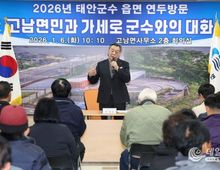 데일리연합 (SNSJTV) 김민제 기자 | 가세로 태안군수가 병오년 새해를 맞아 군민과의 소통을 위한 읍·면 방문 일정에 돌입했다. 군에 따르면, 가 군수는 지난 6일 고남면 방문을 시작으로 △7일 안면읍, 근흥면 △8일 남면 △12일 원북면, 이원면 △13일 태안읍 △15일 소원면에서 ‘2026년 읍·면 연두방문’을 실시한다. 이번 연두방문은 민선8기의 성과와 올 한해 군정운영 기조 및 방향을 군민과 공유하고 각 읍·면의 현안사항에 대해 주민들과 심도 있는 소통의 시간을 갖고자 마련됐다. 가 군수는 군민들이 군정계획을 쉽게 이해할 수 있도록 적극적인 설명에 나서고 각 읍·면별 경로당을 방문해 격려에 나서는 등 그동안 만남의 기회가 적었던 각계각층의 주민들을 두루 만나 허심탄회한 대화를 진행할 계획이다. 방문 첫 일정이 진행된 지난 6일 고남면 행정복지센터에서는 ‘군민과의 대화’에 총 100여 명의 주민이 참석해 다양한 의견을 제시하는 등 성황을 이뤘으며, 군은 주민 건의사항에 대해 현지 확인 등 절차를 거쳐 주민의 입장에서 최대한 조치하겠다는 입장이다. 또한, 해당 건의자에게 검토결
