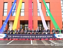 데일리연합 (SNSJTV) 김민제 기자 | 청송군은 24일 ‘청송금곡지구 도시재생인정사업’의 일환으로 조성한 ‘공공협력센터’의 준공식을 개최했다. 2021년 국토교통부 공모사업에 선정된 청송금곡지구 도시재생인정사업에는 ▲구 보건의료원 건물 철거 ▲공공협력센터(5080 청춘삶터) 조성 ▲주민역량강화 프로그램 등이 포함되어 있으며 도시재생 활성화계획에 따라 2025년까지 진행되어 왔다. 이번에 준공된 공공협력센터는 청송읍 금곡리 845-8번지 내 기존에 위치해있던 구(舊) 보건의료원 건물을 철거하고 지하1층/지상5층에 연면적 2,966㎡ 규모로 신축했으며, 다목적 강당, 마을나눔터, 공유주방, 공유오피스 등 다양한 생활 기반 시설을 갖춘 공동체 공간이다. 청송군은 추후 시설에 대한 공간 활성화를 위하여 주민 커뮤니티 교류 거점시설 제공 및 지속적인 사후관리를 할 예정이다. 윤경희 청송군수는 “통합형 소통공간인 공공협력센터가 주민들이 함께 어울리고 소통하는 생활문화의 중심지가 되길 기대한다.”며 “모쪼록 공공협력센터에 대한 주민 여러분의 많은 관심과 꾸준한 이용을 부탁드리며 지역 활성화와 발전을 위해