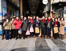 데일리연합 (SNSJTV) 김민제 기자 | 예천군은 설 명절을 맞아 12일 오전 10시 30분부터 예천읍 상설시장과 중앙시장 일원에서 ‘설맞이 전통시장 장보기 행사’를 실시했다. 이번 행사는 경기 침체로 어려움을 겪고 있는 시장 상인들을 격려하고, 명절 대목을 맞아 지역 전통시장에 활력을 불어넣기 위해 마련됐다. 이날 행사에 참여한 예천군 새마을회, 한국자유총연맹 예천군지회, 바르게살기운동 예천군협의회, 예천군 여성단체협의회 및 석송회 등 지역 내 주요 유관단체 회원들은 미리 준비한 온누리상품권으로 제수용품과 생필품을 구매하며 전통시장 이용 촉진 홍보 활동을 펼쳤다. 또한, 김학동 군수는 시장 곳곳을 돌며 상인들의 애로사항을 직접 청취하고, 명절 물가 동향을 살피는 등 현장의 목소리에 귀를 기울이며 소통의 시간을 가졌다. 한편, 예천군은 전통시장 경쟁력 강화를 위해 ▲상인조직 재정비 ▲맥주 페스티벌 등 전통시장 특화 콘텐츠 발굴 및 육성 ▲온누리상품권 가맹점 확대 ▲전통시장 화재공제 지원사업 추진 등 다각적인 노력을 기울이고 있다. 또한, 신도시 지역에는 골목형 상점가를 지정·육성함으