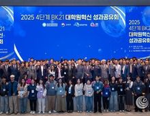 데일리연합 (SNSJTV) 이동수 기자 | 경상국립대학교 대학원은 개교 77주년(건학 115주년)을 맞이하여 10월 21일 하루 동안 가좌캠퍼스 GNU컨벤션센터 2층 대강당과 1·2층 로비에서 ‘2025년 4단계 BK21 대학원혁신 성과공유회’를 개최했다. 이날 행사에는 총장, 연구부총장을 비롯해 경상국립대학교 4단계 BK21 사업 참여 교육연구단(팀)장과 대학원생, 타 대학 BK21 관계자, 교직원 등 400여 명이 참석했다. 행사는 GNU 대학원생 연구 톡톡 대회, 성공 선배와의 대화, 기념식의 순으로 진행됐다. 특히 ‘성공 선배와의 대화‘ 시간에는 BK21 사업단에서 수학한 대학원 졸업생 가운데 자신의 전공을 살려 국내외 무대에서 과학자와 기업가로 각각 크게 성공한 두 동문을 초청하여 후배들과 소통하는 뜻깊은 자리가 마련됐다. 이날 대화에는 진행경 GeneWhales 대표와 안현수 ANH Sturcture 대표가 참여해 글로벌 연구와 창업 현장에서의 경험을 들려주며 대학원생들에게 큰 영감을 주었다. 기념식은 테이프커팅, 행사 소개, 총장 축사, 성과 영상 상영, 총장상(특별상) 시상, 기조 강연, 기념 촬영, BK2