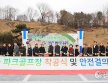 데일리연합 (SNSJTV) 김민제 기자 | 함양군은 지난 12월 16일 함양군 스포츠파크 주차장 일원에서 ‘함양군 파크골프장 조성사업’ 착공식 및 안전결의대회를 개최했다. 이날 착공식에는 진병영 함양군수를 비롯해 김윤택 함양군의회 의장과 군의원을 비롯한 유관기관 단체장, 안병명 체육회장과 정천상 파크골프협회장과 회원, 지역 주민 등 300여 명이 참석해 함양군 파크골프장의 성공적인 출발을 함께 축하했다. 함양군 파크골프장 조성 사업은 총사업비 120억 원을 투입해 7만 4,156㎡ 부지에 36홀 규모의 파크골프장과 이용자의 편의를 위한 부대시설을 조성하는 사업이다. 이 사업은 2022년에 시작하여 오늘 착공식에 이르기까지 많은 행정절차와 우여곡절을 겪었다. 지난 2022년 2월 공유재산 심의를 시작으로 2023년 10월에는 보상계획 열람 공고, 2024년 10월에는 함양군관리계획 결정(변경) 고시, 2025년 4월에는 군계획시설 실시계획 인가 고시를 통해 사업 추진이 구체화했다. 이어 2025년 6월 경상남도 건설기술심의위원회 심의, 7월에는 경상남도 계약심사를 거쳤으며, 8월에 공사