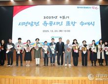 데일리연합 (SNSJTV) 김민제 기자 | 창원특례시는 23일 시청 시민홀에서 ‘2025년도 4분기 시정발전 유공시민 표창 수여식’을 개최했다. 이날 수여식에서는 지역사회와 시정 발전을 위해 공헌한 시민 107명과 함께, ▲2025년 하반기 최고 경영인상 김현기 ▲최고 노동자상 강창열 ▲농업인 대상 변태안 ▲일자리 창출 우수기업 ㈜지성큐앤텍, 엠엔에스아이㈜, 몽고식품㈜)등이 수상의 영예를 안았다. 또한, 김해시 마라톤 대회 현장에서 쓰러진 참가자를 발견하고 신속한 응급처치로 소중한 생명을 구한 창원특례시청 김봉재 주무관이 그 공로를 인정받았다. 장금용 창원특례시장 권한대행은 “올 한 해 각자의 자리에서 지역 발전을 위해 묵묵히 봉사해 주신 수상자 여러분께 진심으로 감사드린다”며, “앞으로도 창원시는 공동체를 위해 헌신한 분들이 존중받고 격려받을 수 있도록 최선을 다하겠다”고 말했다.