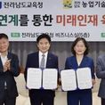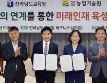 데일리연합 (SNSJTV) 김준 기자 | 전라남도교육청은 10월 14일 청사 5층 비지니스실에서 전라남도 농업기술원(원장 김행란)과 ‘농업과 교육의 연계를 통한 미래인재 육성 업무협약’을 체결했다. 이번 협약은 농업·농촌의 다양한 자원을 교육과 연계해 학생들이 체험 중심으로 배우고, 생태 감수성과 창의 역량을 키울 수 있도록 지원하기 위해 마련됐다. 이번 협약에 따라 양 기관은 ▲ 농촌교육농장과 치유 농장을 활용한 체험교육 확대 ▲ 늘봄학교 운영과 연계 가능한 프로그램 제공 ▲ 생태 기반 창의 교육, 진로, 창업 체험처 발굴 및 정보 제공 ▲ 지속가능한 농촌교육 모델 구축 등에 힘을 모으기로 했다. 양 기관은 협약 내용을 바탕으로, 각급 학교와 교육지원청이 쉽게 활용할 수 있는 프로그램을 발굴하고 현장 체험 중심 교육 자료를 개발할 예정이다. 또한 교원 연수와 교육공동체 협력 네트워크를 운영해 농업·농촌 자원을 효과적으로 교육 현장에 적용할 수 있도록 지원할 방침이다. 아울러, 농촌교육농장의 교육적 활용도를 높이고, 지역 농업과 연계한 미래형 교육 모델을 확산할 계획이다.