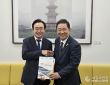데일리연합 (SNSJTV) 김민제 기자 | 윤병태 나주시장이 2026년도 국비 확보를 위해 김병기 더불어민주당 원내대표와 단독 면담을 진행하고 한국에너지공과대학교 지원, 에너지 전문과학관 건립, 직류산업 혁신특구 지원 등 7대 핵심사업의 국가적 필요성을 설명하며 국회 차원의 협력을 요청했다. 25일 나주시에 따르면 윤병태 시장은 지난 24일 국회를 방문해 김병기 원내대표와 만나 2026년 주요 국고사업 반영을 위해 필요한 예산 지원을 건의했다. 이번 면담은 지난 3일 한병도 예결위원장을 찾아 주요 사업을 설명한 데 이어 예산 심사 막바지 단계에서 나주시 핵심사업의 필요성을 다시 한번 전달하기 위해 마련됐다. 윤 시장은 인재 양성을 위한 한국에너지공과대학교 출연금 안정적 지원, 국립 나주 에너지 전문과학관 건립, 핵융합 시험설비 구축 등 에너지 분야 국가 전략사업의 추진 필요성을 중점적으로 설명했다. 특히 한국에너지공과대학교 지원과 초전도 도체 시험설비 구축이 이재명 정부가 추진하는 차세대 전력망 구축 정책과 직결되는 기반 사업임을 강조하며 연구와 실증, 산업화를 연결하는 국가 인프라라는 점을 부각