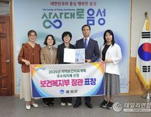 데일리연합 (SNSJTV) 김민제 기자 | 음성군이 보건복지부 주관 제8기 지역보건의료계획 시행 3차년도 계획평가에서 우수 지자체에 선정돼 보건복지부 장관 표창을 수상했다고 10일 밝혔다. 보건복지부는 보건의료 우수사례 확산과 담당자 역량 강화를 위해 지난 1일 서울 플로팅아일랜드 컨벤션홀에서 2025년 우수 지자체 성과공유회를 열었으며, 음성군은 전국 228개 시군구 중 우수 지자체로 선정된 28곳에 포함됐다. 제8기 지역보건의료계획은 2023년부터 2026년까지 주민의 건강 증진을 위한 지역 실정에 맞는 보건 의료사업을 체계적으로 추진하기 위해 수립하는 중장기 계획으로, 각 지방자치단체에서는 연차마다 전년도 시행 결과와 연관성 있는 다음 연도 계획을 지속적으로 수립하고 있다. 군은 이번 시행계획에서 ‘함께 건강하고 모두 행복한 상상대로 음성’이라는 비전으로 △감염병 대응 및 공중보건 위기 대응 의료체계 구축 △건강수명 향상을 위한 다차원적 건강 증진 서비스 제공 △취약계층 건강 형평성 구현을 위한 스마트케어 생태계 구축 등 3개 추진 전략 아래 11개의 추진 과제를 선정했다. 특히 2차 연도(
