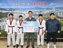 데일리연합 (SNSJTV) 김민제 기자 | 힘찬태비태권도장이 11월 7일 오후 4시 30분 중구청 구청장실을 찾아 울산사회복지공동모금회를 통해 이웃돕기 후원금 30만 원을 전달했다. 이번 전달식에는 김영길 중구청장과 김아롱 힘찬태비태권도장 관장, 태권도장 아동 등 5명이 참석했다. 힘찬태비태권도장은 ‘2025년 종갓집 중구 체육대회’ 입장식(퍼레이드) 행사에 참여해 학성동 주민자치위원회로부터 받은 사례비를 전액 기부했다. 해당 후원금은 지역 내 홀몸 어르신 3명에게 각 10만 원씩 전달될 예정이다. 김아롱 힘찬태비태권도장 관장은 “아이들과 함께 지역 행사에 참여하고 나눔도 실천할 수 있어서 뜻깊다”며 “앞으로도 주변에 희망과 사랑을 전하기 위해 노력하겠다”고 말했다. 김영길 중구청장은 “어려운 이웃을 위해 따뜻한 마음을 모아주셔서 감사드린다”며 “겨울을 앞두고 홀몸 어르신의 생활을 살피고 지원하는 데 후원금을 잘 활용하겠다”고 밝혔다.