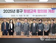 데일리연합 (SNSJTV) 김민제 기자 | 울산 중구가 11월 7일 오후 3시 30분 중구청 소회의실에서 2025년 중구 평생교육협의회를 개최했다. 중구 평생교육협의회는 평생학습 계획 수립·시행 및 제도 개선, 평생교육 유관기관 협력 증진에 관한 의견을 제시하는 기구로, 의장인 김영길 중구청장과 평생교육 전문가, 장애인 평생교육 관계자, 강북교육지원청 관계자 등 12명으로 구성돼 있다. 이날 참석자 8명은 올 한 해 평생학습 사업 성과와 내년도 평생학습 사업 추진계획 등을 살펴보고 다양한 의견을 나눴다. 한편, 중구는 지난 2007년 평생학습도시로 지정된 이후 다양한 평생학습 사업을 운영하며 평생학습 저변 확대에 힘쓰고 있다. 김영길 중구청장은 “평생학습을 통해 지역의 발전을 도모할 수 있도록 위원들의 적극적인 협조를 부탁드린다”며 “앞으로도 언제, 어디서나, 누구나 공평하게 배움의 기회를 누릴 수 있도록 평생학습 문화 확산에 힘쓰겠다”고 밝혔다.