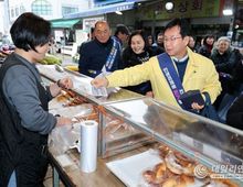 데일리연합 (SNSJTV) 김민제 기자 | 조달청은 11일 민생 안정과 지역경제 활성화를 위해 대전 중구에 위치한 태평시장을 찾았다. 이번 방문은 설 명절을 앞두고 전통시장에서 지역 사회복지시설에 전달할 물품 등을 구입하고, 소상공인을 응원하기 위해 마련됐다. 백승보 조달청장은 온누리상품권으로 과일, 떡, 국거리용 소고기 등 물품을 직접 구매하면서 명절 물가를 살피고, 상인들이 체감한 지역경제 상황 및 애로사항을 청취하고 격려했다. 이용수 상인회 회장은 “2011년 태평전통시장과 자매결연을 맺은 이후 조달청에서 명절마다 잊지 않고 방문해 주셔서 감사하다”고 전했다. 백 청장은 “전통시장은 우리 민생 경제의 뿌리이자 온기가 시작되는 곳” 이라며 “민생과 지역경제의 현장을 지속적으로 살피고, 공공조달을 통해 지방성장과 균형성장을 뒷받침할 수 있도록 정책 역량을 집중해 나가겠다”고 말했다. 한편, 조달청은 이날 시장에서 구입한 물품을 성심원 등 대전지역 6개 사회복지시설에 기부하여 나눔 문화를 실천했다.