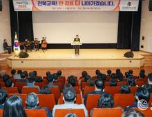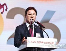 데일리연합 (SNSJTV) 김준 기자 | 전북특별자치도교육청은 5일 창조나래 시청각실에서 2026년 새해 업무 시작을 알리는 시무식을 개최했다. 유정기 교육감 권한대행을 비롯한 직원들은 붉은 말의 해 병오년(丙午年)을 맞아 한국 교육의 중심으로 나아가는 전북교육의 힘찬 출발을 다짐했다. 이날 시무식은 학생과 교직원 새해맞이 영상 시청, 떡 케이크 커팅식, 문화 공연, 전입 공무원 소개 등의 순으로 진행됐다. 유정기 권한대행은 올해의 사자성어로 선정한 ‘마부정제(馬不停蹄)’를 언급하며 “‘달리는 말은 말굽을 멈추지 않는다’는 뜻”이라며 “학력신장과 책임교육에 한층 정성을 다하자”고 당부했다. 유 권한대행은 6일 신년기자회견을 열어 학력신장과 책임교육을 중심으로 AI교육과 역사교육 등 올해 추진할 주요 정책을 소개할 예정이다.