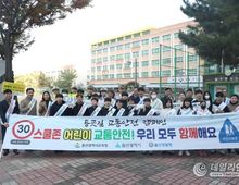 데일리연합 (SNSJTV) 김준 기자 | 울산광역시교육청은 6일 오전 8시에 울주군 울주명지초등학교 앞 어린이보호구역에서 ‘민·관·경이 함께하는 등굣길 교통안전 홍보 활동(캠페인)’을 펼쳤다. 이번 홍보 활동은 지역사회 협력으로 어린이보호구역 내 교통사고를 예방하고, 학생이 안심하고 학교에 다닐 수 있는 교통안전 문화를 확산하고자 마련됐다. 이날 행사에는 천창수 교육감을 비롯해 김종훈 울산광역시의회 의원, 울산시청, 울주군청, 울산울주경찰서, 강남교육지원청 관계자와 울주명지초등학교 학생과 교직원 등 50여 명이 함께했다. 참여자들은 어깨띠를 두르고 학교 정문에서 출발해 인근 횡단보도와 아파트 단지 주변을 돌며 교통안전 홍보 활동을 벌였다. 무인단속카메라, 신호기, 보도 안전울타리 등 보호구역 내 안전시설을 점검하고, 등굣길 학생들에게 교통안전 홍보 스티커가 부착된 구급함 밴드 세트와 교통안전 안내문을 나눠줬다. 현장에서는 학생들에게 ‘어린이 안전 수칙 일이삼사(일단 멈춤, 이쪽저쪽 살피기, 삼 초 동안 주의, 사고 예방)’ 등의 보행 수칙을 알리고, 시민들에게는 ‘안전속도 5030’,
