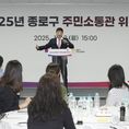 데일리연합 (SNSJTV) 김민제 기자 | 종로구는 11월 3일 구청 회의실에서 '주민소통관 위촉식 및 열린 소통의 장'을 개최했다. 지난 8월 선발한 24명에 이어 추가 모집한 29명에게 위촉장을 전달하고, 전체 주민소통관이 모여 앞으로 하고 싶은 일을 공유하면서 관심 영역별 소모임을 구성해 교류하는 시간이었다. 주민소통관은 종로에 10년 이상 거주하거나 2대 이상 주민등록을 둔 18세 이상의 주민, 관내 사업장 5년 이상 근무자 등 53명으로 구성됐다. 위촉 기간인 2년 동안 지역 현안에 대한 의견 제시와 정책 제안, 행사 기획을 맡는다. 주요 관심사로는 문화·여가, 지역경제·일자리, 교육·청소년, 돌봄·복지 등이 있으며 향후 지역에서 필요한 일을 함께 나누고 돕는 종로형 공동체를 만드는 데 이바지할 전망이다. 종로구는 주민소통센터와 함께 이들의 아이디어가 구체화 될 수 있게 지원하고, 제안 정책이 주민 삶을 더 나은 방향으로 이끌어갈 수 있게 선순환 구조를 만들 예정이다. 또한 직장인도 부담 없이 참여할 수 있도록 평일 저녁이나 주말 시간대의 모임과 비대면 회의·누리소통망(SNS