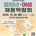 데일리연합 (SNSJTV) 김민제 기자 | 인천광역시는 중장년과 여성의 새로운 일자리 도전과 사회 참여 확대를 지원하기 위해 오는 10월 28일 인천시청 중앙홀에서 ‘2025 인천 중장년·여성 채용박람회’를 개최한다고 밝혔다. 이번 박람회는 올해 다섯 차례 진행된 ‘2025 인천 상설 채용박람회’의 마지막 일정으로, 인천시와 성평등가족부, 중부지방고용노동청 등 10개 기관이 공동으로 주최한다. 이번 행사에는 33개 기업이 참여해 현장 면접을 진행하고, 구직자들에게 실질적인 취업기회를 제공할 예정이다. 또한 채용관 외에도 ▲이력서 사진 촬영 ▲퍼스널컬러 진단 ▲인공지능(AI) 캐리커처 제작 등 구직자의 이미지 개선과 취업 경쟁력 향상을 위한 다양한 체험프로그램이 함께 운영된다. 연계행사로는 대회의실에서 ‘여성의 취·창업 역량 강화’를 위한 특별강연이 오전·오후로 두 차례 나뉘어 진행된다. 오전 1차 특강에서는 개그맨 출신 사업가 고명환이 강사로 나서 중장년층의 창업 전환을 주제로 실질적인 경험과 노하우를 전달하고, 오후 2차 특강에서는 과학 유튜버‘궤도’가 디지털 리터러시 향상과 인공지능(AI)을 활용한 구직·창업 전략에 대해 강의한다. 행사 당일 면접에 참여