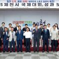 데일리연합 (SNSJTV) 김민제 기자 | 제천시는 지난 1일 제천시청 5층 청풍호실에서 '2025년 제천시 국제대회'성과보고회를 개최했다. 보고회에는 김창규 제천시장, 박영기 제천시의회 의장, 김경석 대한롤러스포츠연맹 회장(이상 공동조직위원장), 장재돈 대한체조협회 고문과 안성국 제천시체육회장(집행위원장), 오재성 제천시체조협회장, 최호열 제천시롤러스포츠연맹회장(이상 공동 사무총장) 및 유관기관, 단체장 3명과 종목단체 임원 및 회원 50여 명이 참석했다. 이날 보고회는 올해 제천시에서 열린 국제대회인 '2025 기계체조 아시아선수권대회(6.1.~6.15.)'와 '2025 아시아 롤러스케이팅 선수권대회(7.19.~7.30.)'의 성공 개최를 기념하고, 대회 관계자들의 노고를 격려하며 성과를 공유하는 자리였다. 행사는 유공 기관·단체에 대한 감사패 수여와 유공자 표창 순으로 진행됐다. 제천시장 감사패는 대회 유치와 개최를 주관한 ▲대한롤러스포츠연맹(회장 김경석) ▲제천시롤러스포츠연맹(회장 최호열) ▲대한체조협회(공석) ▲제천시체조협회(회장 오재성)에 수여됐다. 또한, 두 대회를 실질적으로 준비하고 집행한 ▲제