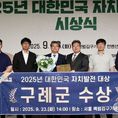 데일리연합 (SNSJTV) 김민제 기자 | 전남 구례군은 9월 23일 서울 백범김구기념관에서 열린 ‘2025년 대한민국 자치발전 대상’ 시상식에서 기초자치단체 부문 대상을 수상하는 영예를 안았다. 전남 지자체 중에서는 구례군이 유일하게 수상했다. 이번 시상식은 (사)한국자치발전연구원과 한국지방자치학회가 공동 주최·주관했으며, 문정복, 박민규, 임종득 국회의원을 비롯해 전국 각지의 자치단체장과 의회 의장, 수상자 등이 참석해 성황을 이뤘다. 구례군은 이번 수상을 통해 미래 성장동력 확보와 지역경제 기반 강화에 크게 기여한 다양한 성과를 인정받았다. 총사업비 약 1조 4천억 원 규모의 양수발전소 유치를 성공시키며 에너지 산업 중심지로 도약할 기반을 마련했으며, 전국 최초로 ‘흙 살리기 운동’을 선도해 기후변화 대응과 탄소중립 실현에 앞장섰다. 또한, ‘섬진강권 통합관광벨트’를 비롯한 초광역 관광개발사업을 추진하여 지역 내 새로운 관광지 발굴과 기존 관광지 활성화에 주력, ‘관광 제2르네상스’ 실현에 박차를 가하고 있다. 이러한 정책 효과로 구례군은 인구감소 위기 속에서도 2년 연속 순전입 인구 증가를