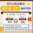 데일리연합 (SNSJTV) 임재현 기자 | 강진군은 9월29일부터 12월31일까지 강진사랑상품권 할인율을 상향 조정한다고 24일 밝혔다. 추석 명절 맞이 및 지역경제 회복을 위해 마련된 할인 혜택은 지류 및 모바일(착) 강진사랑상품권 구매 시 선할인 10%이며, 기간 중 모바일(착) 사용 시 후캐시백 적립 5%로 총 15% 할인 혜택을 받을 수 있다. 구매 한도는 월 70만 원으로 동일하다. 다만, 모바일(착) 상품권 후캐시백은 매월 1억 원을 투입할 예정으로 예산소진 시 운영이 종료되므로 혜택을 받기 위해서는 빠르게 소비하는 것이 유리하다. 관내 모바일(착) 상품권은 음식점, 전통시장, 주유소, 미용실, 병원, 마트 등 지역 내 1,600여 개의 가맹점에서 사용할 수 있다. 자세한 가맹점 안내는 강진군 홈페이지 및 지역상품권 chak(앱) ‘가맹점 찾기’에서 확인할 수 있다. 모바일(착) 상품권 한 이용자는 “상품권을 충전할 때 10% 할인받는 것도 좋지만, 결제할 때마다 캐시백을 적립해 주니 쓰는 재미가 있어서 착을 더 이용한다”며 “명절 연휴뿐만 아니라 3개월동안 1