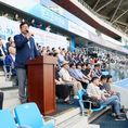 데일리연합 (SNSJTV) 김준 기자 | 도성훈 인천광역시교육감은 6일 인천축구전용경기장에서 새얼문화재단과 공동으로 주최한 ‘제40회 새얼백일장’에 참석했다. 이번 대회는 인천시교육청이 추진하는 ‘읽걷쓰 3대 축제’ 중 하나로, 세대를 아우르는 시민 글쓰기 축제로 자리매김하고 있다. 올해 백일장에도 도서 지역 어린이들부터 만학 어르신까지 7천여 명이 참가해 시·산문·동시 등 다양한 부문에서 자기 생각을 글로 풀어내며, 세대 간 소통과 공감을 나눴다. 도성훈 교육감은 “새얼백일장이 마흔 번째를 맞아 매우 뜻깊다”며 “우리 인천 시민 모두가 40년의 세월을 읽고, 걷고, 쓰며 함께 달려온 의미 있는 날”이라고 강조했다. 이어 “이제 인천은 떠나가는 도시에서 찾아오는 도시로 성장했고, 아이 키우기 좋은 도시, 자랑스러운 도시로 변화하고 있다”며 “도서 지역 어린이들부터 만학도 어르신까지 함께하는 이번 백일장이 그 변화를 보여주는 상징적인 자리”라고 말했다. 또한 도 교육감은 “앞으로 인천은 기회의 도시를 넘어 새로운 주도성을 가진 인문학 도시로 성장할 것이며, 이 백일장을 통해 아이들이 즐