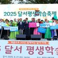 데일리연합 (SNSJTV) 김민제 기자 | 대구 달서구는 27일 월광수변공원에서 열린 '2025 달서평생학습축제'가 주민 5천여 명이 참여한 가운데 성황리에 마무리됐다고 28일 밝혔다. 이번 축제는 대구 최초 평생학습도시 지정 20주년을 기념해 지난 20년의 성과를 돌아보고 앞으로의 비전을 선포하는 뜻깊은 자리였다. “배움으로 20년, 함께 여는 달서 미래”를 주제로 열린 축제에는 지역 주민과 평생학습 동아리, 희망학습마을, 지역 평생교육기관이 대거 참여해 주민 주도형 학습문화의 성과를 선보였다. 특히 전날부터 이어진 제12회 국제교육도시연합(IAEC) 아시아·태평양 네트워크 지역회의와 연계해 국내외 교육도시 대표단이 함께했으며, 지역 거주 외국인 주민도 참여해 글로벌 축제 분위기를 더했다. 해외 대표단은 달서구의 열정적인 학습 분위기와 다채로운 프로그램을 주목하며 “주민이 중심이 되는 축제 모델”로서 달서구를 높이 평가했다. 행사에서는 ‘지속가능한 평생학습도시 달서’ 비전 선포 퍼포먼스를 비롯해 성과발표, 주민자치센터 프로그램 경연대회, 동아리 버스킹, 체험부스 등 다채로운 프로그램